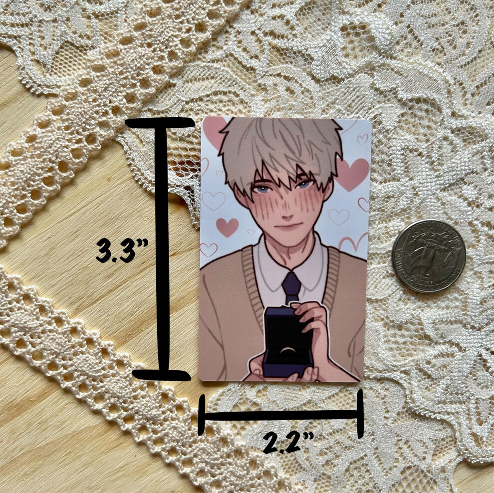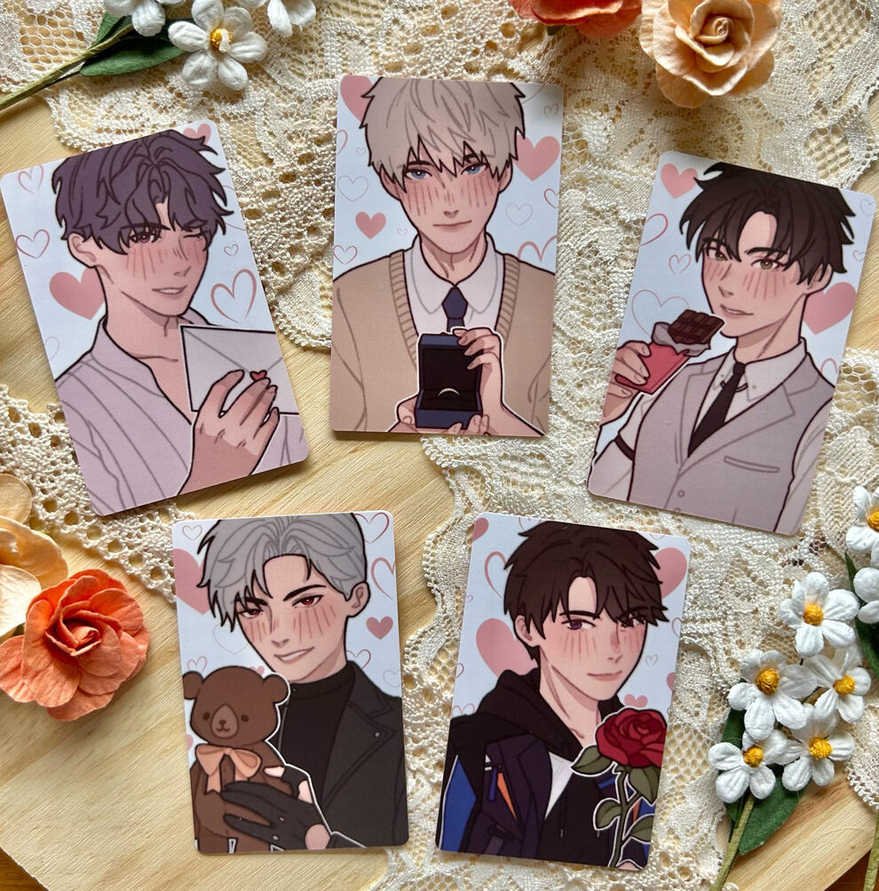 A variety of photocards made in 2025, in the size 3.3" by 2.2". One featured series is Love and Deepspace and Twisted Wonderland.