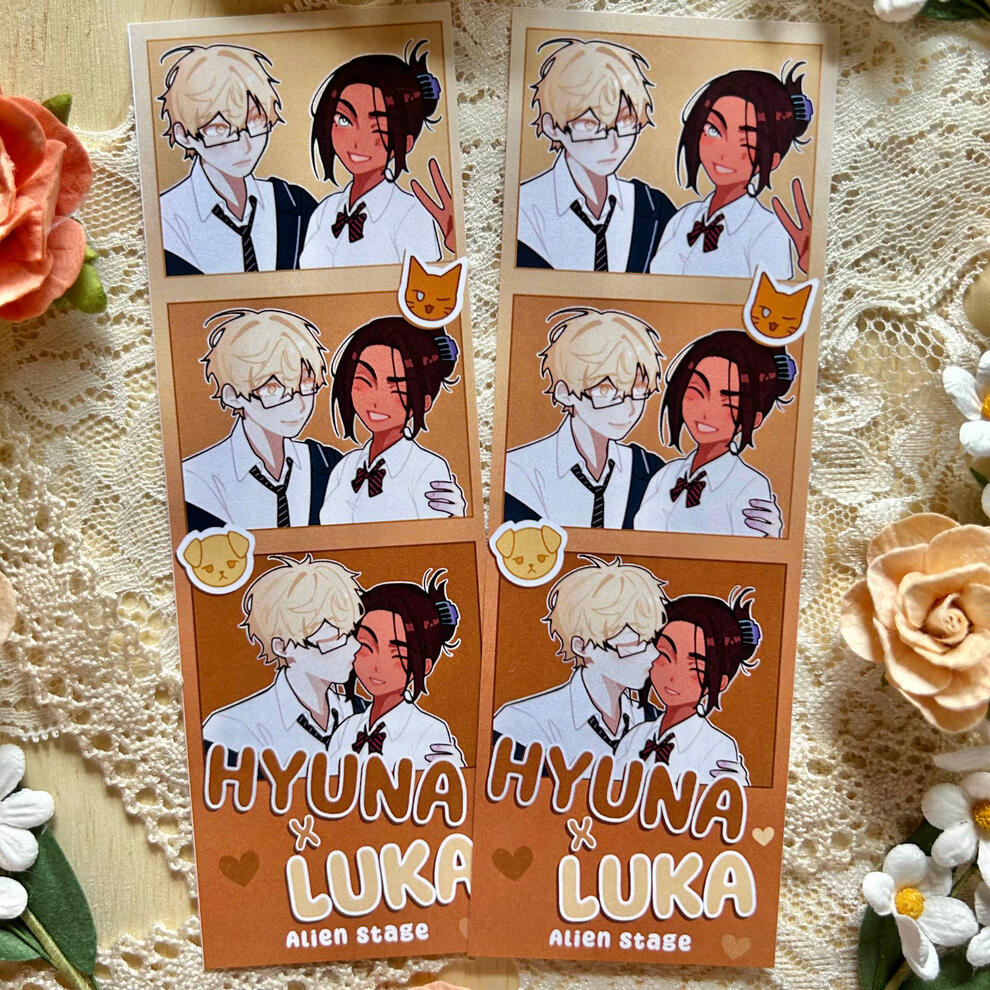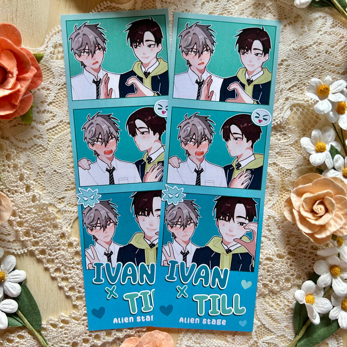Photostrips sized 2x6”. Two featured series are Alien Stage and Haikyuu.